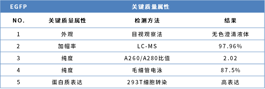 一管式合成eGFP mRNA与传统工艺相比,mRNA检测结果无明显差异: