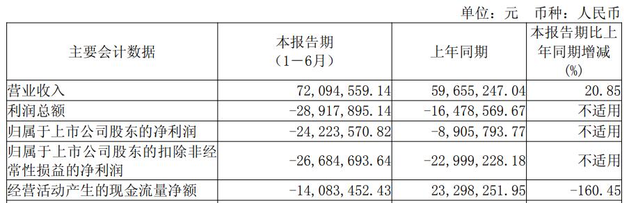 近岸蛋白(688137.SH) 2025年半年度报告显示,2025年上半年,公司实现营业收入7209.46万元,同比增长20.85%;归属于上市公司股东的净利润为-2422.36万元,上年同期为-890.58万元;归属于上市公司股东的扣除非经常性损益的净利润为-2668.47万元,上年同期为-2299.92万元;经营活动产生的现金流量净额为-1408.35万元,上年同期为2329.83万元。