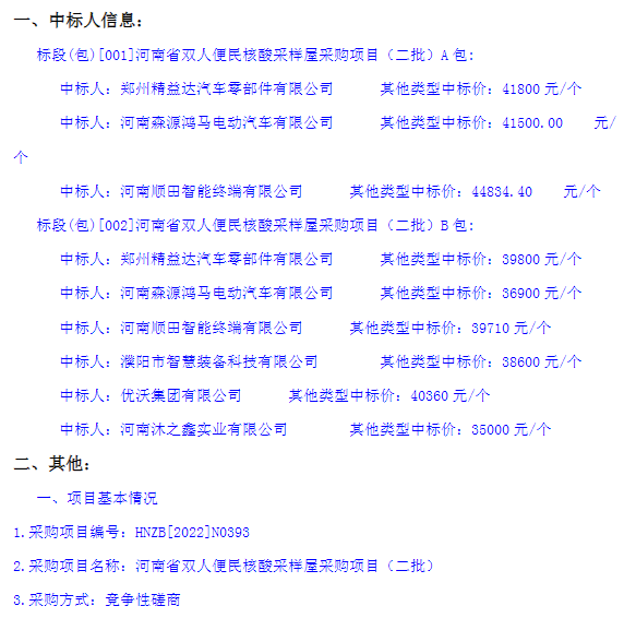 从河南省招标采购网中,易简财经找到了核酸屋中标的公示。