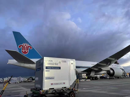 海尔生物医疗主动式航空温控集装箱飞抵德国法兰克福机场