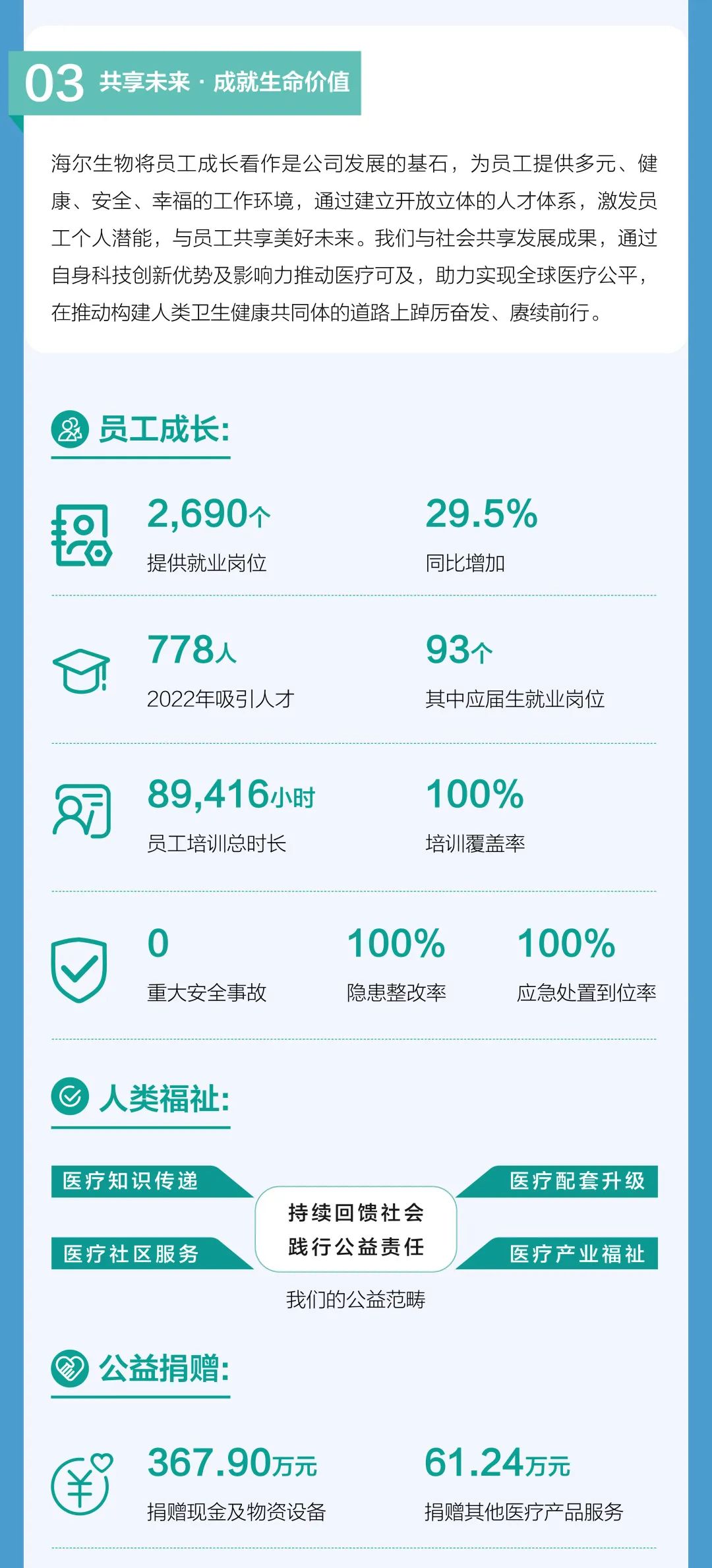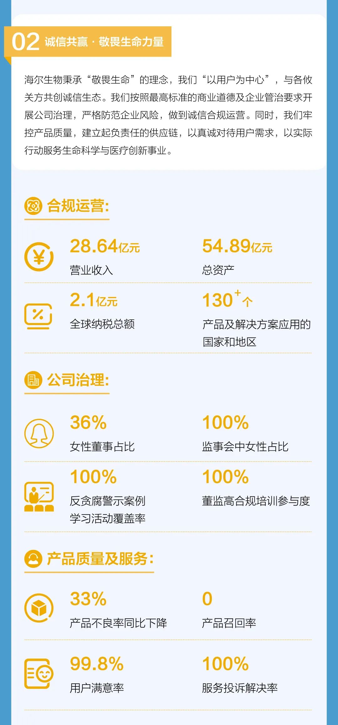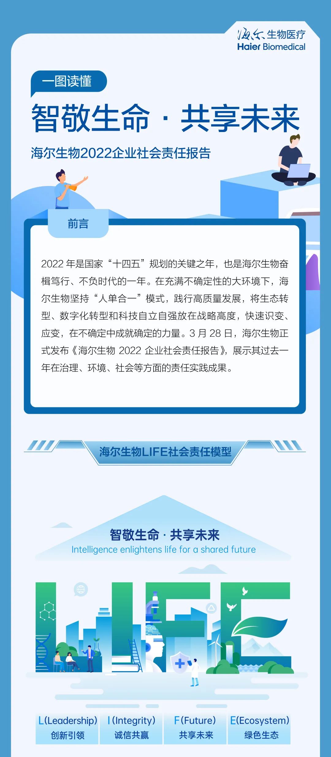 2022年是国家“十四五”规划的关键之年,也是海尔生物奋楫笃行、不负时代的一年。在充满不确定性的大环境下,海尔生物坚持“人单合一”模式,践行高质量发展,将生态转型、数字化转型和科技自立自强放在战略高度,快速识变、应变,在不确定中成就确定的力量。3月28日,海尔生物正式发布《海尔生物2022企业社会责任报告》,展示其过去一年在治理、环境、社会等方面的责任实践成果。