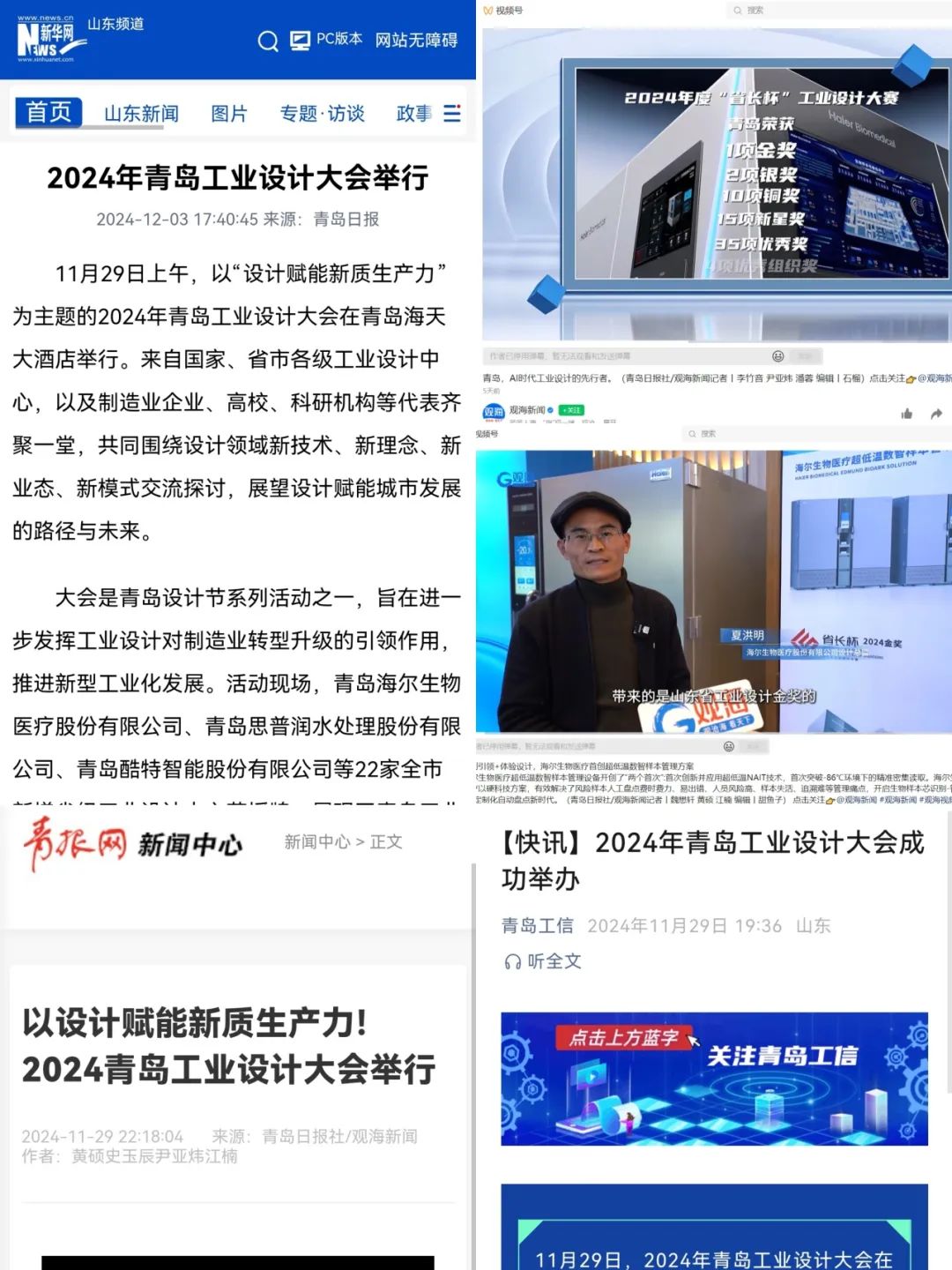 作为同时揽获省长杯金奖和德国iF设计奖的企业,海尔生物医疗应青岛工业和信息化局和青岛工业设计协会邀约,携数智生物样本库场景方案“C位”亮相,并获颁省级工业设计中心授牌。会议期间,新华网、青报网、观海新闻等多家媒体对现场盛况进行了报道。