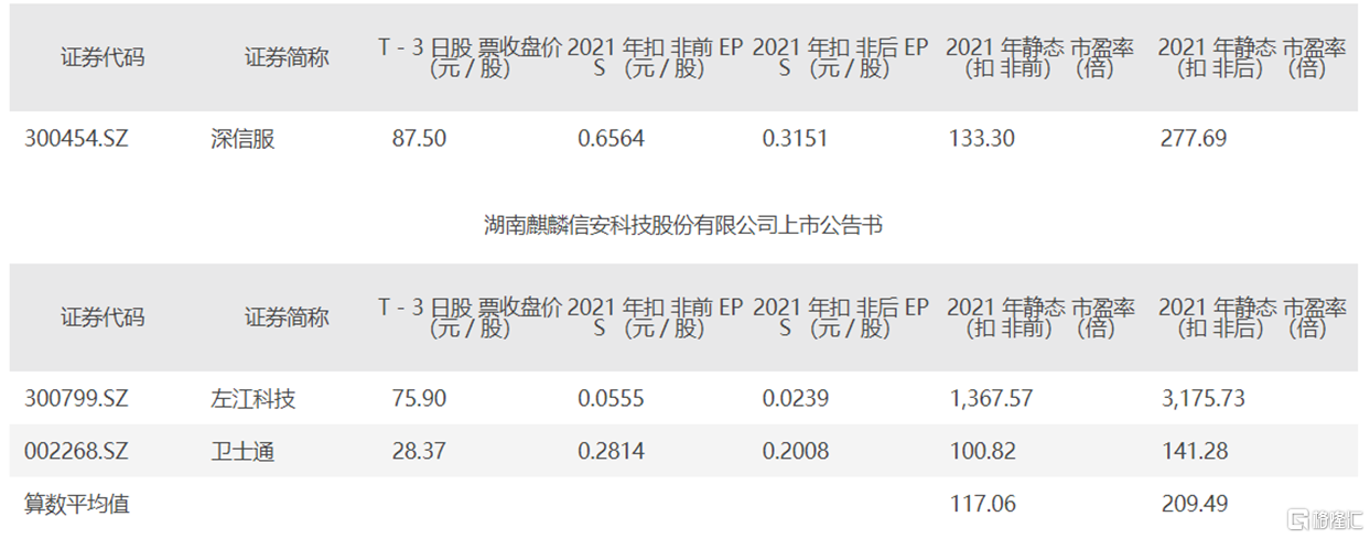 10月28日,麒麟信安(688152.SH)于科创板上市,其发行价格68.89元/股,对应的市盈率为41.78倍,远低于同行业可比公司的市盈率水平。