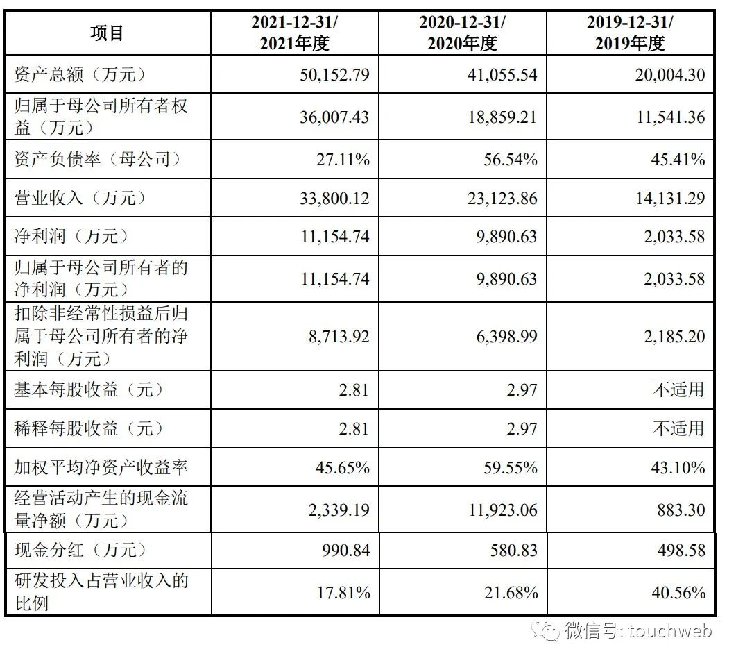招股书显示,麒麟信安2019年、2020年、2021年营收分别为1.41亿元、2.3亿元、3.38亿元;净利分别为2034万元、9890.6万元。