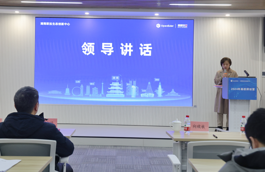 本次师训营由长沙市大数据产业链、长沙市新一代自主安全计算系统产业链指导,由湖南欧拉生态创新中心和国家关键领域信创行业产教融合共同体主办。湖南湘江新区科技创新和产业促进局党组成员、岳麓区工业和信息化局局长向成承,湖南鲲鹏/昇腾生态创新中心COO唐勇,麒麟信安公司总裁、湖南欧拉生态创新中心执行董事刘文清出席。