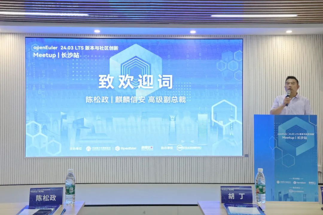 麒麟信安高级副总裁陈松政为本次活动致辞。他表示,openEuler社区已成为国内最具活力、最具潜力的操作系统原生根社区,麒麟信安紧跟openEuler同步发布商业版本,见证了openEuler从20.03、22.03到24.03的高速发展,未来将继续携手openEuler以及湖南欧拉生态创新中心为中国开源大业做出积极贡献。