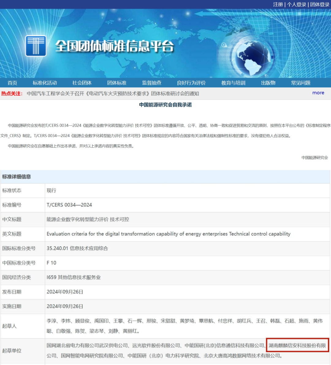 近日,中国能源研究会发布公告,《能源企业数字化转型能力评价技术可控》团体标准发布。该标准由麒麟信安与国网湖北省电力有限公司武汉供电公司、国网智能电网研究院有限公司、中能国研(北京)电力科学研究院等单位联合编制。