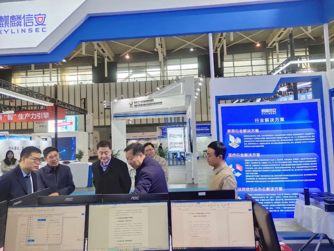 麒麟信安构建基于全行业的信息安全底座及全场景解决方案,打造麒麟信安操作系统、支持信创PC的新一代云桌面方案等产品,受到各级领导和参展嘉宾高度关注。江苏省工业和信息化厅副厅长池宇莅临麒麟信安展台,听取了杨涛董事长关于公司技术进展和行业应用情况的汇报,全面了解麒麟信安产品技术优势和实践成果。