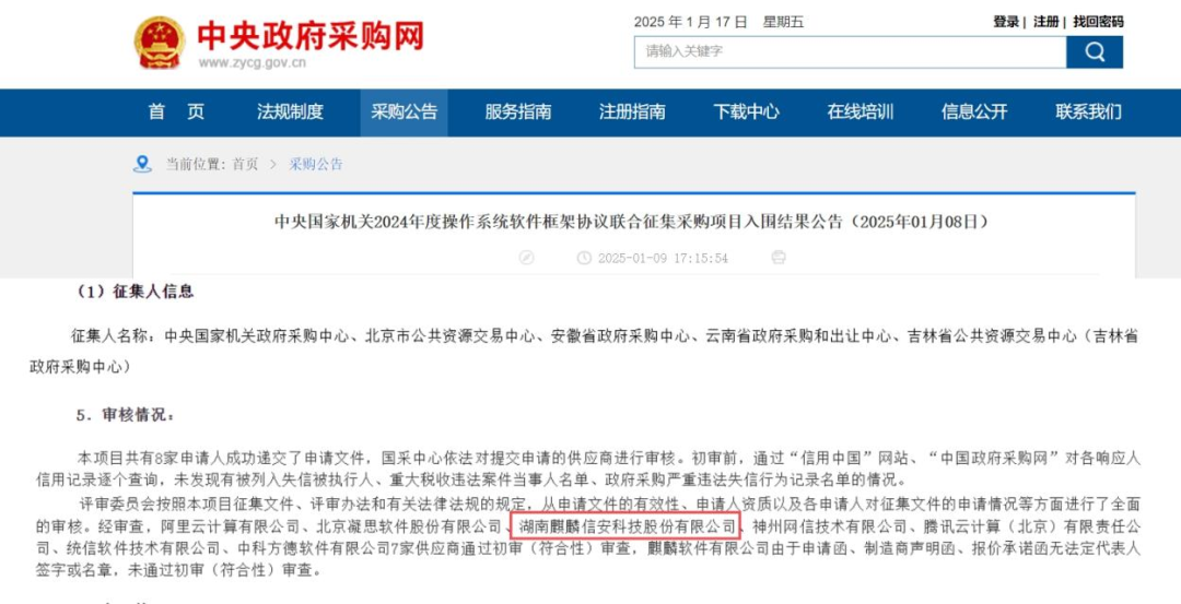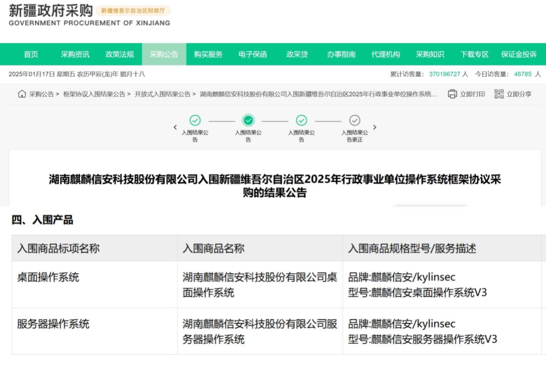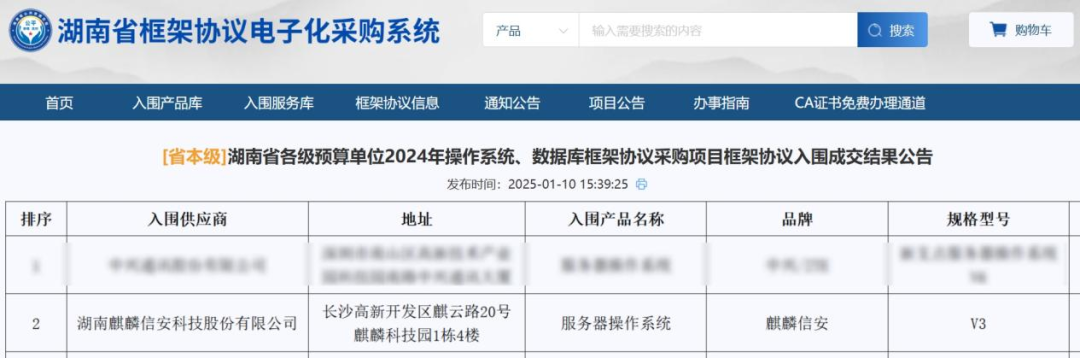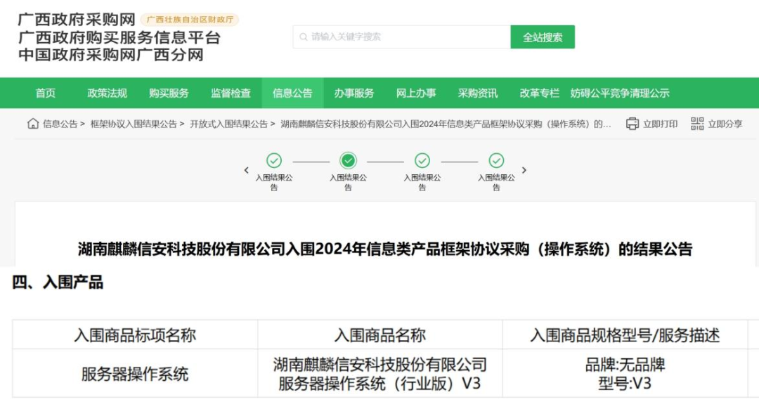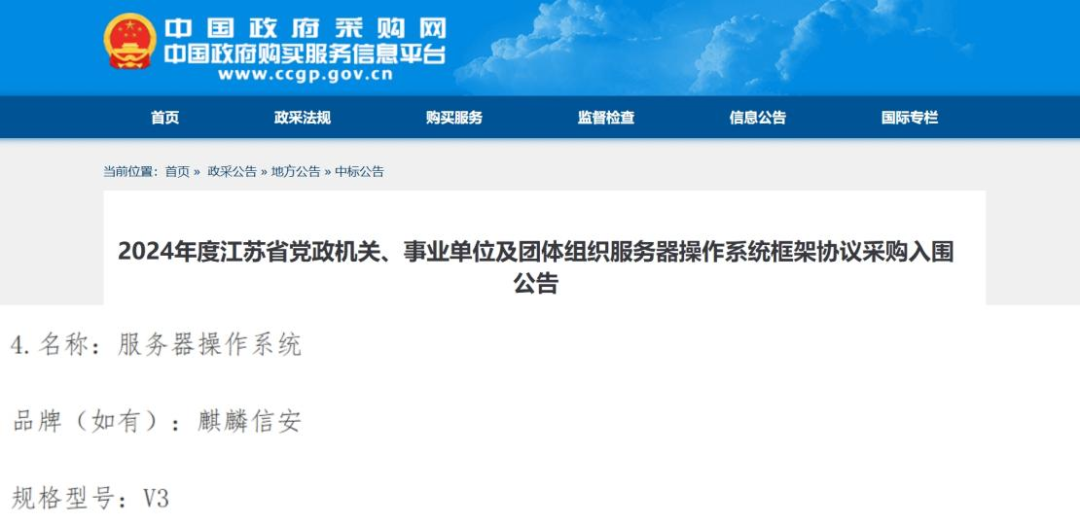 近期,麒麟信安相继入围中央国家机关及北京市、安徽省、云南省、吉林省、湖南省、江苏省、广西省、上海市、新疆省等全国多地的2024年操作系统框架协议采购项目。