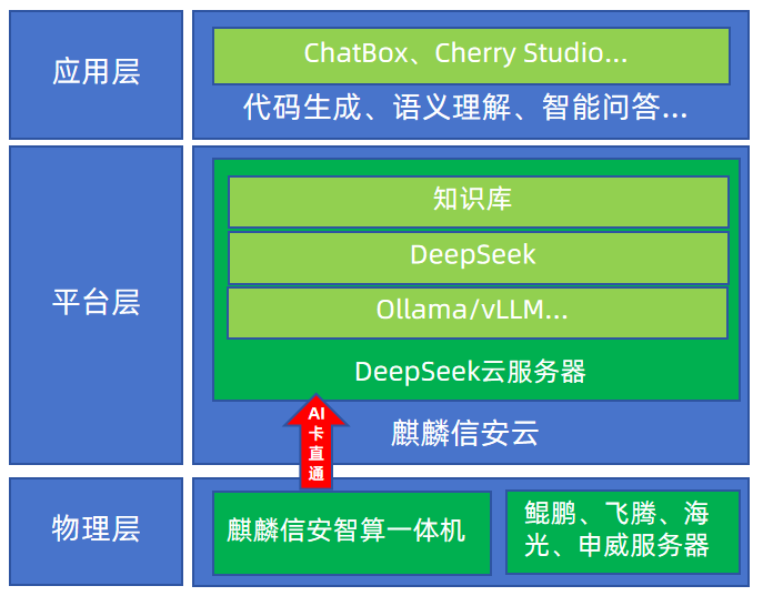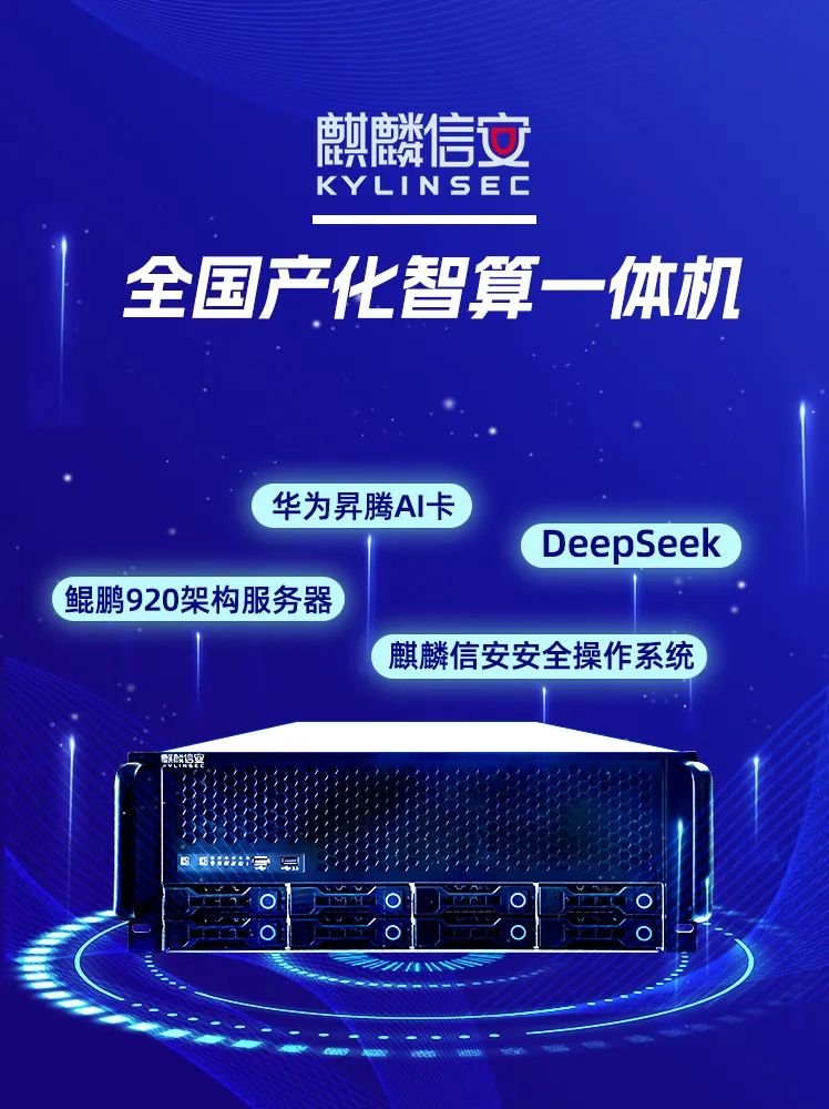 近日,麒麟信安推出集高性能、高安全与智能化于一身的麒麟信安全国产化智算一体机。该一体机产品采用国产鲲鹏920架构服务器+华为昇腾AI卡,搭载麒麟信安安全操作系统,内置DeepSeek大模型,致力于打造面向关键领域的全国产化、软硬件一体化的智算信创解决方案。