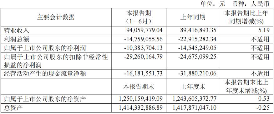 2025 年上半年营收 9406 万,同比增长 5.19%;亏损 1038 万。