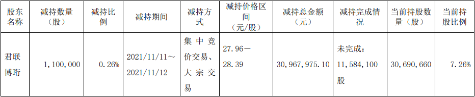 截止公告披露日,君联博珩直接持有公司股份3069.07万股,占公司总股本的7.26%。