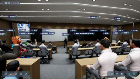 2022年,51WORLD推出了51Meet元宇宙会议厅,高管开会、人事培训,都可以在线上虚拟会议室中进行,如果你足够勇敢出挑,还可以化身“恐龙”,在会议室和老板battle几句。