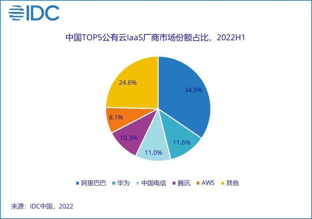 国内公有云市场规模巨大,只是,云服务市场马太效应明显,国内云服务市场被五大厂商牢牢控制,呈现出强者愈强的格局,留给中小云玩家的机会越来越少。IDC数据显示,2022上半年,IaaS市场以及IaaS+PaaS市场竞争格局中,排名前五的云厂商一直占据70%以上的市场份额。阿里云、华为云、天翼云、腾讯云、AWS(亚马逊云科技)分别占据国内公有云IaaS市场的34.5%、11.6%、11%、10.3%和8.1%。