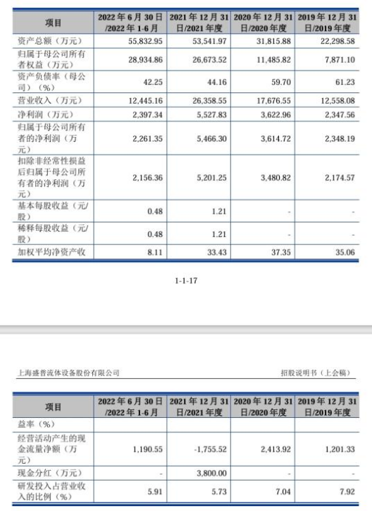 财报数据显示,2019年至2022年上半年,盛普分别实现营收1.26亿元、1.77亿元、2.64亿元和1.24亿元;净利润分别为0.23亿元、0.36亿元、0.55亿元和0.24亿元。