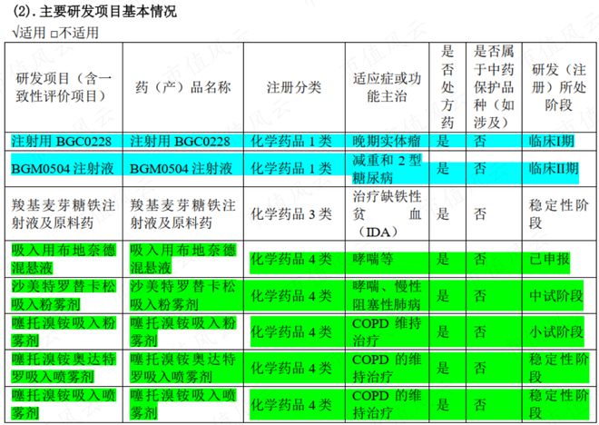 目前,吸入用布地奈德混悬液已在国内申报,噻托溴铵奥达特罗吸入喷雾剂已完成BE试验(生物等效性试验),噻托溴铵吸入喷雾剂完成稳定性研究,沙美特罗替卡松吸入粉雾剂完成工艺验证,噻托溴铵吸入粉雾剂已经完成中试。