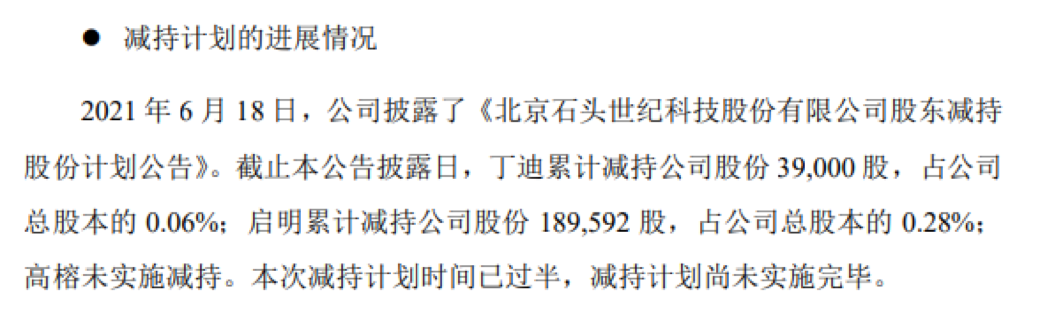 8月24日,石头科技公布股东减持进展公告,显示减持计划尚未实施完毕。