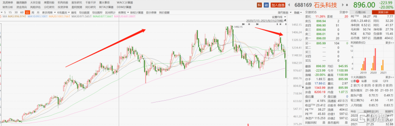 营收净利的双增长并没有使石头科技今日的股价疯涨,反而是大跌了近20%。不过,股价大涨大跌对石头科技来说,并不新鲜。自6月21日,石头科技股价冲至高点1492.94元后,石头科技便一路坐上了“过山车”。