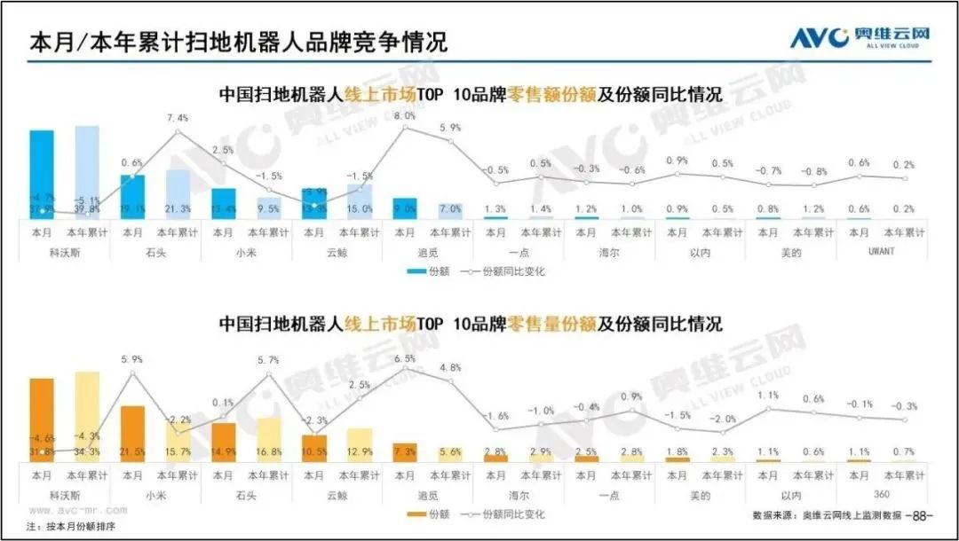奥维云网数据显示,中国扫地机器人市场仍呈现出一超多强局面,市场格局或仍在重塑。科沃斯市场2022年线上市场份额占比近40%,而二梯队的石头科技、云鲸市场份额较为接近,其分别为21.3%、15.05%。