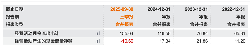 盈利能力下滑的同时, 石头科技 的现金流状况也亮起红灯。2025年前三季度,公司经营活动产生的现金流量净额为-10.6亿元,上年同期则为正,2024年经营活动产生的现金流量净额则为17.34亿元。