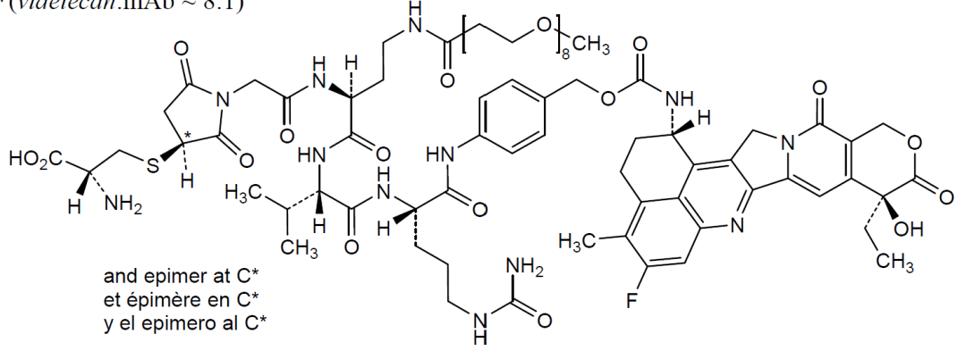 百奥泰在ADC方面布局较早,开发的微管抑制剂平台产品BAT8001、BAT8003折戟后,开发了新的Topo1i ADC平台,其载荷选择了成熟的分子Exatecan,开发了新型cleavable连接子,引入了PEG8提高亲水性,根据最新公开的INN,其Payload-Linker结构如下:
