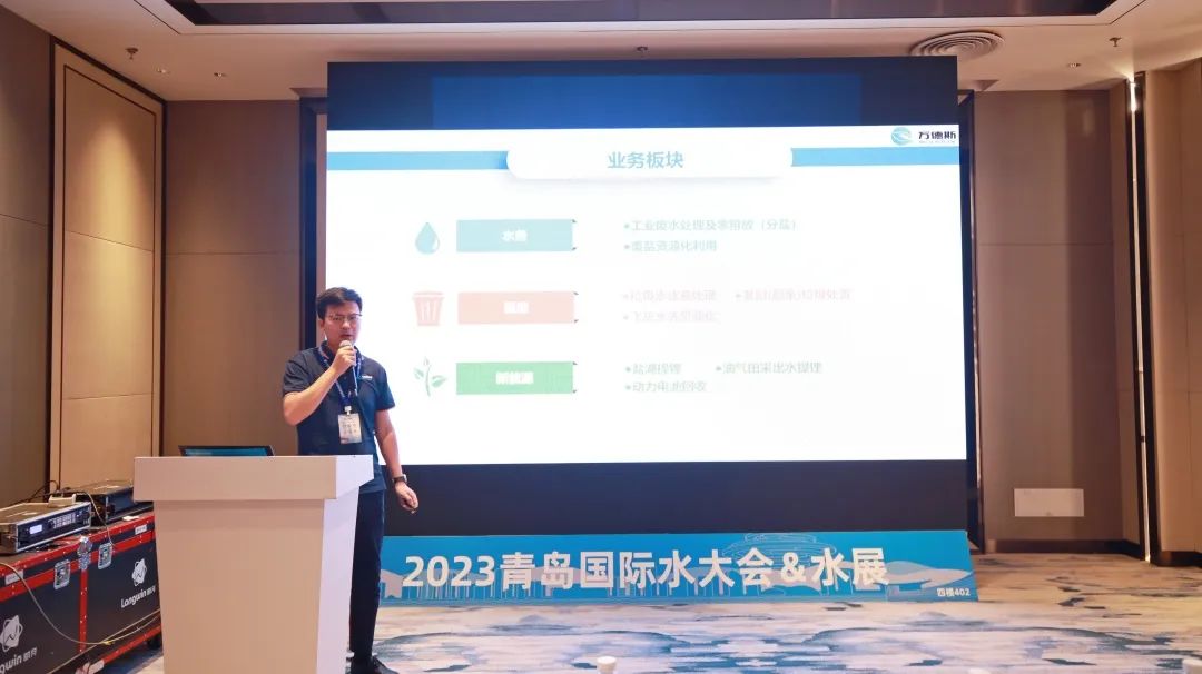 万德斯工业事业部总工孙少龙和能源材料事业部技术经理方陈宏分别作题为《浅谈环保政策对高盐水零排市场的影响及整体解决方案》、《提锂技术在地下深层卤水综合资源化中的应用》主题报告,多角度展现了万德斯高盐废水零排放技术和应用成果,并围绕新能源行业废水的发展现状、盐湖提锂技术、油气田采出提锂技术等核心处理技术研发应用、典型案例、合作模式等话题,与参会人员展开深入探讨交流。