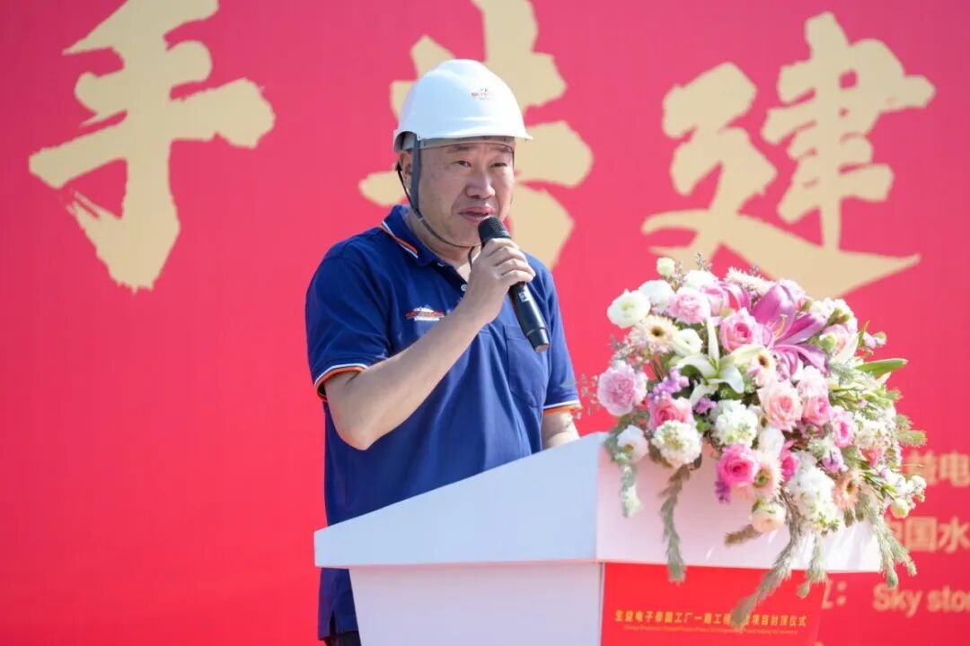 中国水电泰国有限公司副总经理李洋在致辞中表示,厂房主体结构顺利封顶是各方紧密协作、攻坚克难的成果,施工团队将持续以高标准推进后续工程,保障项目整体品质。
