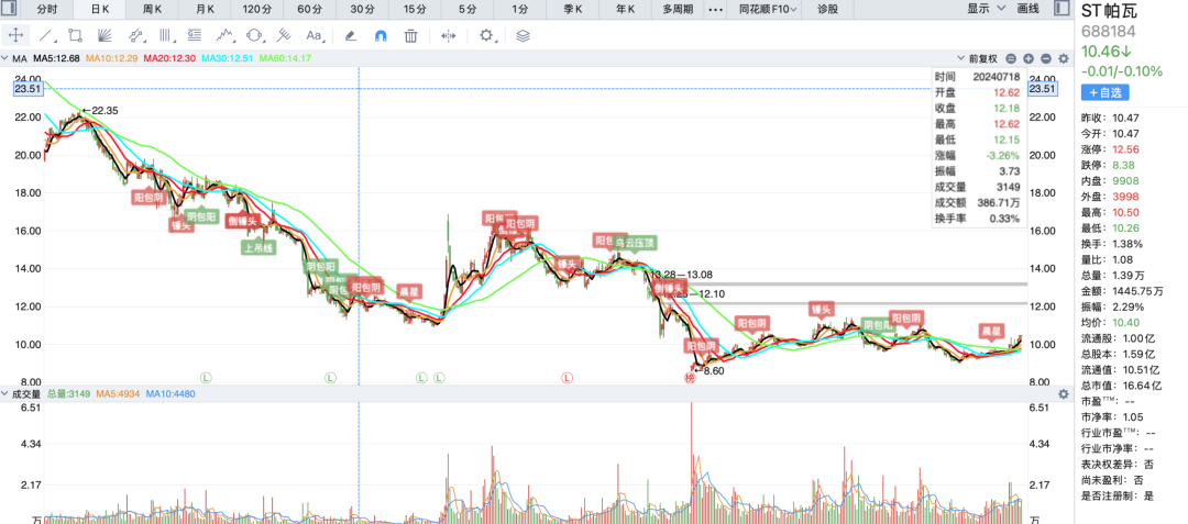 2025年4月,年审机构对ST帕瓦2024年度财务报告内部控制出具了否定意见的审计报告,根据《上海证券交易所科创板股票上市规则》第12.9.1 条第一款第(三)项的相关规定,公司被实施其他风险警示,股票简称由“帕瓦股份”变更为“ST帕瓦”。
