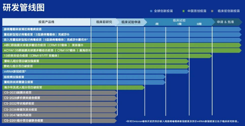 康希诺表示将进一步拓展mRNA技术的平台价值,未来拟推入临床阶段的产品会综合考虑药审评价策略、市场空间及投入产出比等,例如带状疱疹、呼吸道合胞病毒(RSV)、流感、新冠+流感等疾病领域都是可能的开发方向。
