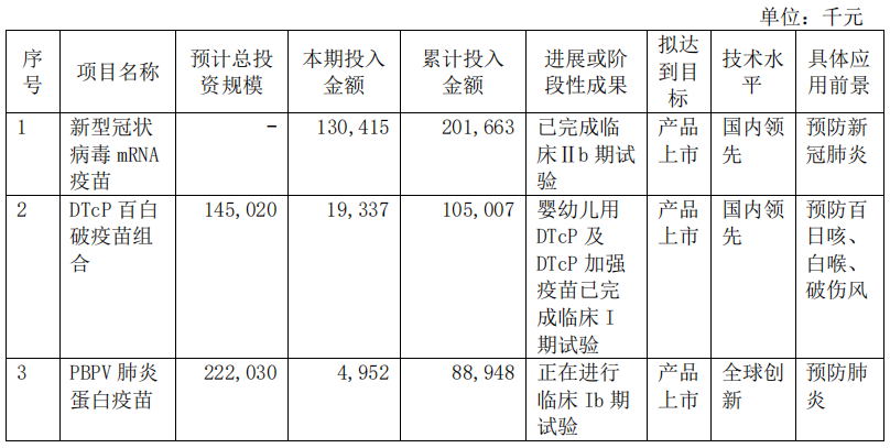 康希诺mRNA技术平台与产业化基地情况。自2018年起,公司已经开始关注、布局mRNA合成和递送技术,并进行专利、工艺、mRNA序列设计等多方面储备。自2019年1月开始,公司陆续申请了多项关于mRNA疫苗设计和新型递送系统设计的专利,启动了基于mRNA平台技术的相关疫苗管线的研发。2022年4月,公司在研产品新型冠状病毒mRNA疫苗的临床试验申请获得批准,之后组织开展临床研究,取得了积极的临床数据。公司正在上海临港建设mRNA产业化基地,首期规划产能为1亿剂,截至2022年年底,已开始进行试生产。