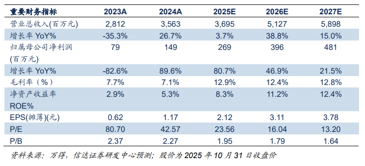 盈利预测与投资评级:我们预测公司2025-2027年归母净利润分别为2.69、3.96和4.81亿元,同比增速分别为80.7%、46.9%、21.5%,EPS分别为2.12、3.11和3.78元/股,按照2025年10月31日A股收盘价对应的PE分别为23.56、16.04和13.20倍。考虑到公司海内外产能扩展计划,2025-2027年公司有望实现较大业绩增长空间,我们维持对公司的“买入”评级。