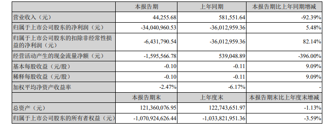 长动退(000835.SZ,即长城国际动漫游戏股份有限公司)在今年一季度营收仅为44255.68元,本报告期比上年同期减少92.39%,归母净利润亏损3404万元。