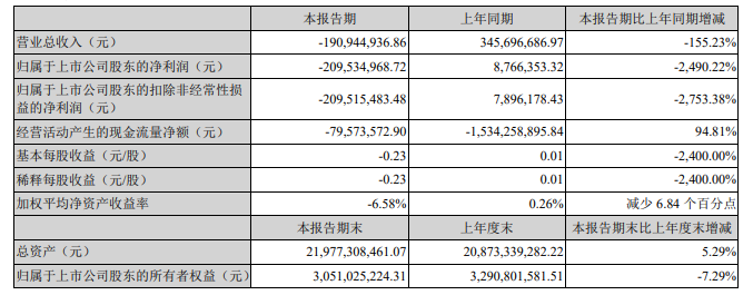 锦龙股份(000712.SZ,广东锦龙发展股份有限公司)在第一季度报告表示,本报告期营业总收入为-1.9亿,同比减少155.23%,归属于上市公司股东的净利润-2.09亿,同比减少2490.22%。