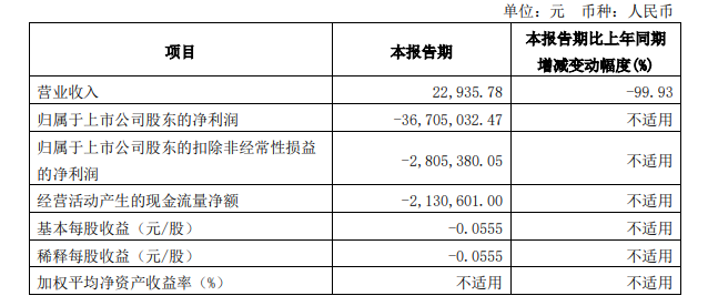*ST西源(600139.SH,即四川西部资源控股股份有限公司)第一季度报告显示,营业收入为22935.78元,同比降低99.93%,归母净利润亏损280万元。
