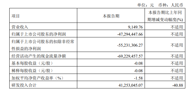 根据第一季度报告,海创医药(688302.SH,海创药业股份有限公司)营收为0元,归属上市公司股东的净利润亏损8689万元。