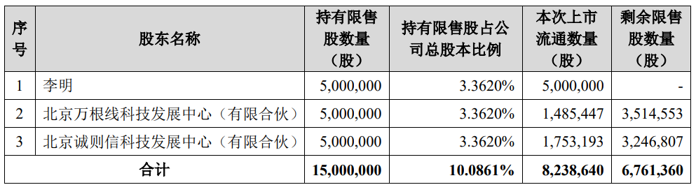 首药控股3月15日披露关于首次公开发行部分限售股上市流通的公告,本次上市流通的限售股份为公司首次公开发行部分限售股,共涉及限售股股东数量3名,对应股票数量8,238,640股,占公司总股本的5.5397%,锁定期自公司股票上市之日起36个月,将于2025年3月22日届满;因届满次一日为非交易日,故实际上市流通日期顺延至次一交易日,即2025年3月24日。