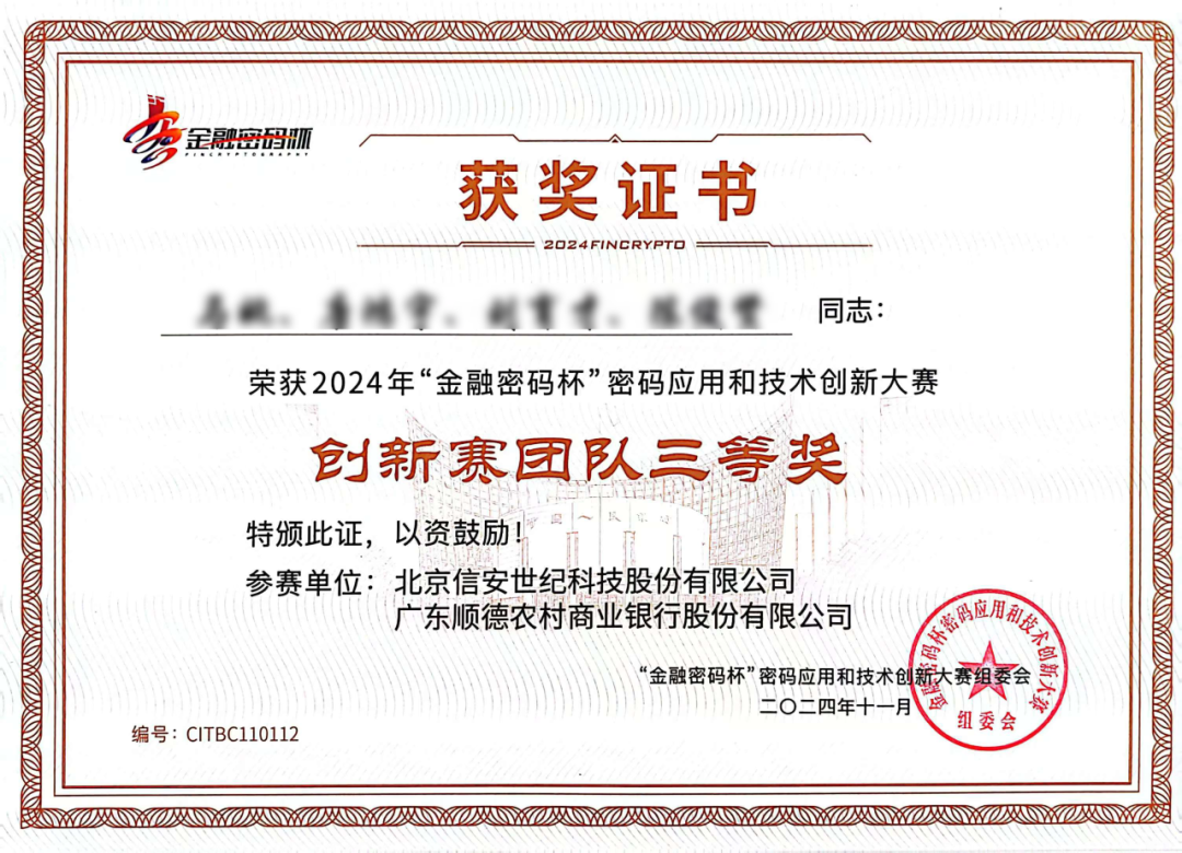 此次获奖再次肯定了信安世纪在密码技术创新与应用方面的创新实力,未来,信安世纪将继续秉承创新精神,不断推动密码技术研发与应用,为金融行业信息安全保驾护航。