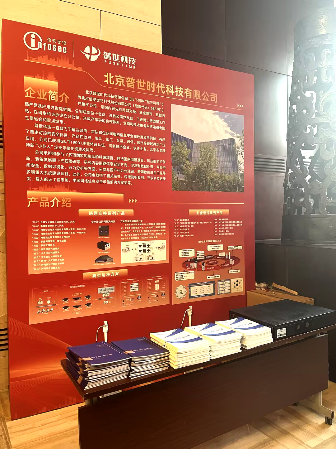 新质生产力的高质量发展离不开高水平的安全保障,信安世纪控股子公司北京普世时代科技有限公司(简称“普世科技”)一直致力于解决政府、军队和企业面临的信息安全和数据应用问题。会上,信安世纪特别展出了其跨网交换、安全管控及数据归档系列产品,这些产品凭借其自主可控的安全体系和在多个关键领域的深度应用,赢得了与会嘉宾的高度评价和广泛关注。
