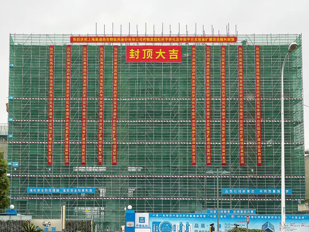从一纸蓝图到喜封金顶,美迪西药物研发实验室的每一个角落,每一处细节,都凝聚着匠心品质,也见证着美迪西赋能更多新药研发的信心和决心。项目于2022年年初奠基开工,凭借科学严谨的实验室设计方案及高效高质的建筑施工能力,实现了主体结构的顺利封顶,取得了工程建设的阶段性胜利,也为后续项目如期竣工奠定了坚实的基础。