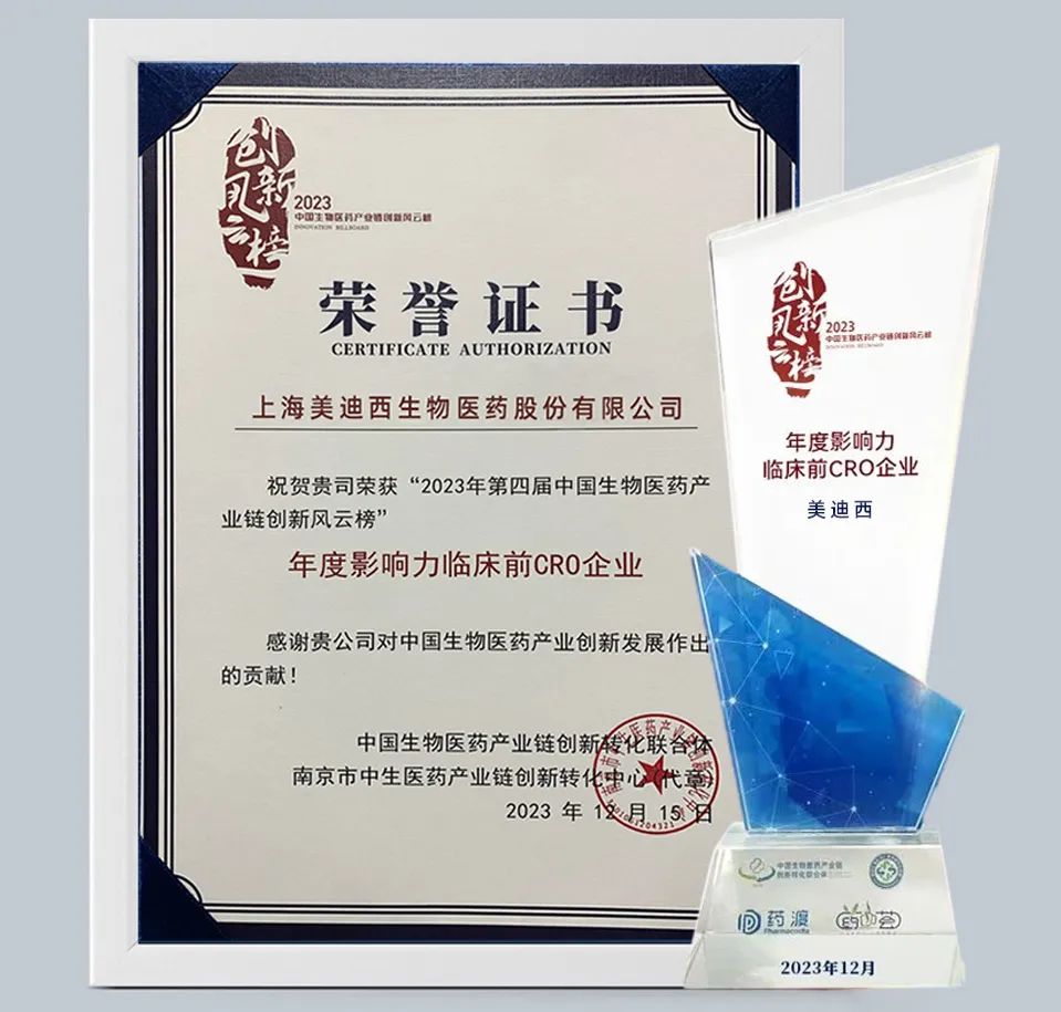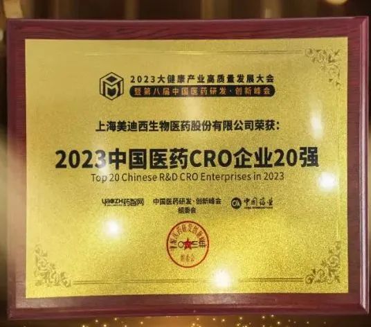 这一年,美迪西荣获2023“年度影响力临床前CRO企业”、2023中国医药CRO企业20强、2022-2023年度“中国医药研发50强”、2022年度中国CXO企业TOP20排行榜、2023中国生物医药产业价值榜“最具影响力CRO企业TOP10”等荣誉称号,获得行业嘉奖。