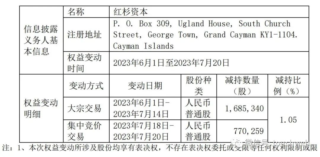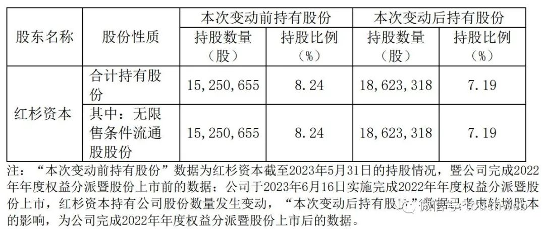 本次权益变动后,红杉资本持有公司股份数量占公司总股本的比例由8.24%减少至7.19%。