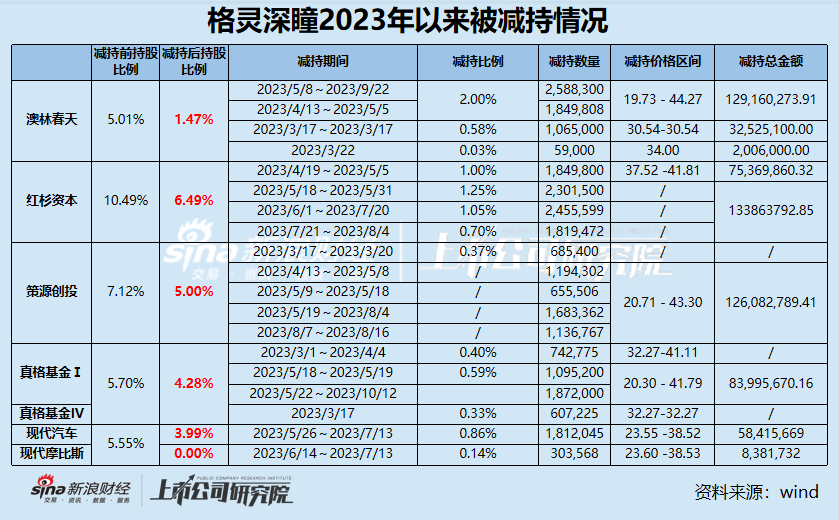 截至格灵深瞳的最新公告显示,2023年以来,格灵深瞳股票解禁后,澳林春天、红杉资本、策源创投、真格基金以及现代汽车和现代摩比斯等股东均开启了连番减持。