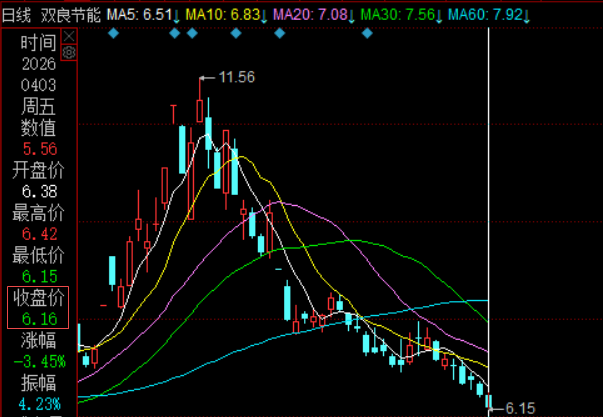 4月3日,双良节能的股价收盘只有6.16元了,对比2月12日的收盘10.71元,浮亏超过40%。
