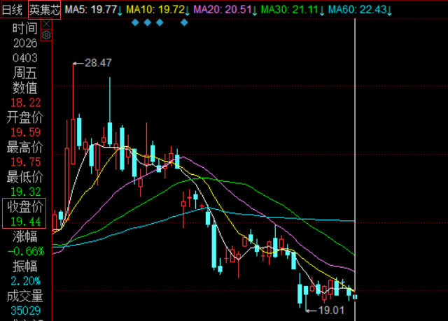 4月3日,英集芯的股价收盘只有19.44元了,对比1月21日的最高28.47元,浮亏超过30%。
