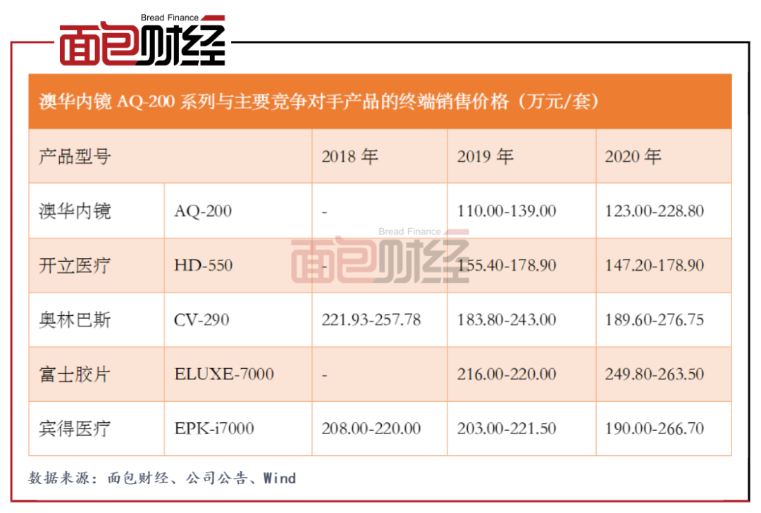 图3:2018年至2020年澳华内镜AQ-200系列与主要竞争对手产品的终端销售价格