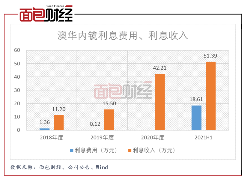 图7:2018年至2021H1澳华内镜利息费用、利息收入
