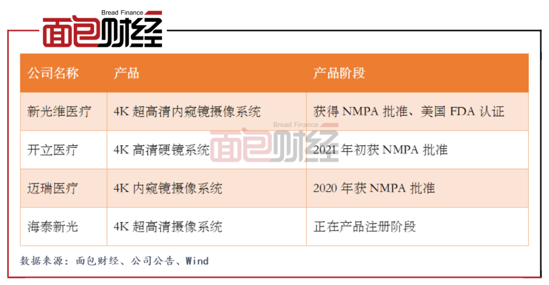 图4:国内主要4K超高清内窥镜代表企业的产品发展情况