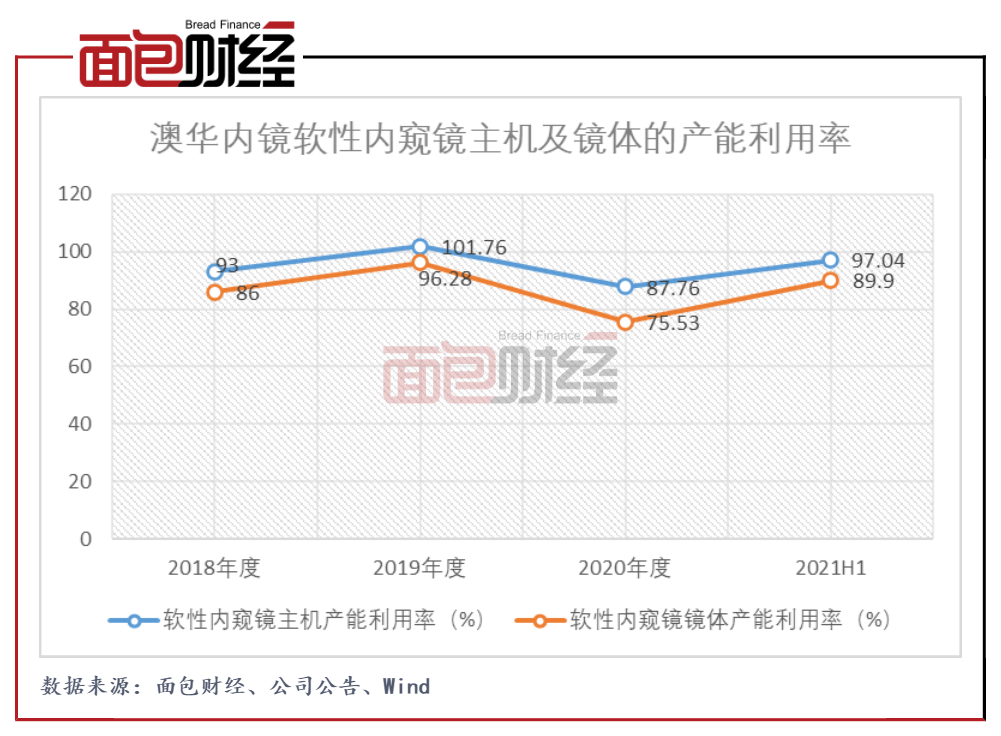 招股书显示,项目建成后澳华内镜的产能将实现较大规模扩大,但当前公司产线的利用率尚未完全,扩产后可能存在产能无法消化的风险。生产基地建设项目规划年产3500套内窥镜设备和6500条内窥镜镜体。截至目前,公司软性内窥镜主机和软性内窥镜镜体的年产能分别为2500台和4000条,如生产基地建设项目顺利建成投产,届时公司的产能将实现超翻番。