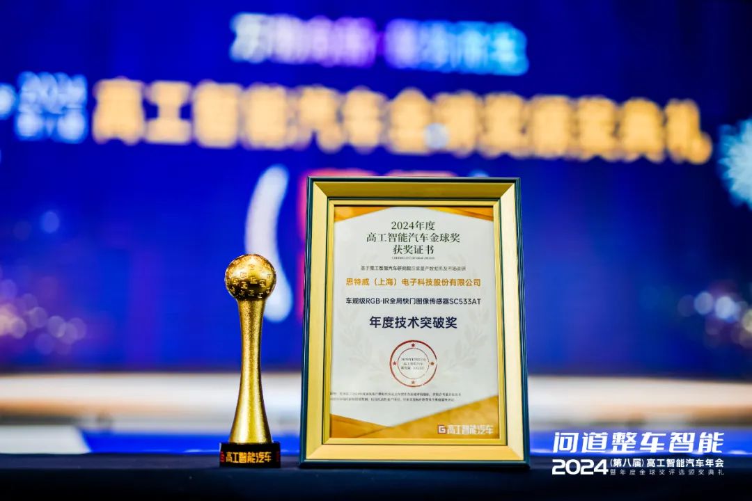 12月10-12日,2024第八届高工智能汽车年会暨年度金球奖评选颁奖典礼在上海汽车城瑞立酒店隆重举行。作为年度中国智能汽车全产业链技术、产品及量产交付的风向标,本届高工智能汽车金球奖以技术突破、标杆产品、量产首创以及出海(本地化)突破为全新评选方向,在竞争白热化的中国市场寻找行业新榜样。在本届金球奖颁奖典礼上,思特威5MP车规级RGB-IR全局快门图像传感器SC533AT荣获“年度技术突破奖”。