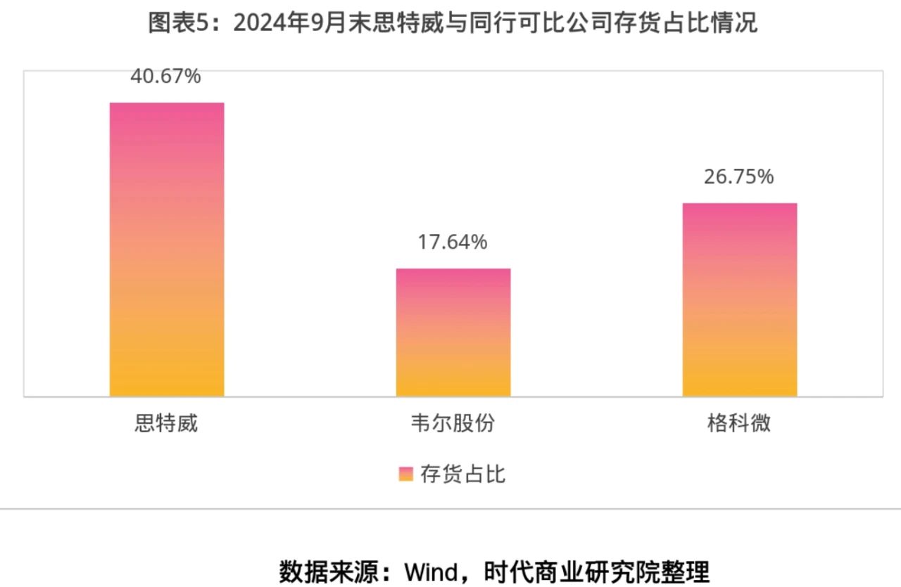 5.存货占比远超同行。2024年9月末,思特威的存货金额达32.26亿元,占总资产的比例高达40.67%,存货占比远高于竞争对手韦尔股份(17.64%)和格科微(26.75%)。